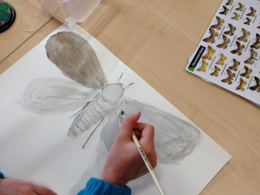 Shotover Primary School students using their observation skills painting moths. Image - Emma Watts.